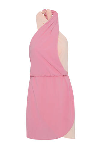İki farklı kullanım şekli olan elbisemiz, Turuncu ve Pembe rengin uyumunu gözler önüne seriyor.