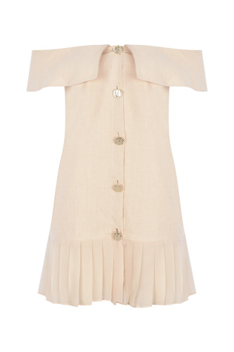 Keten kumaşın, gold düğme detaylarıyla buluşması.
